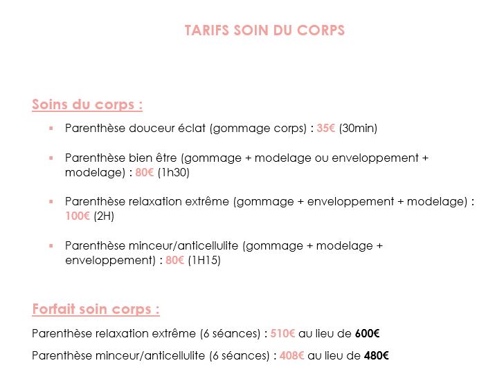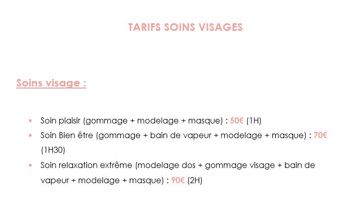 J’offre une gamme complète de soins de beauté, y compris des soins du visage, soins visages et corps.
